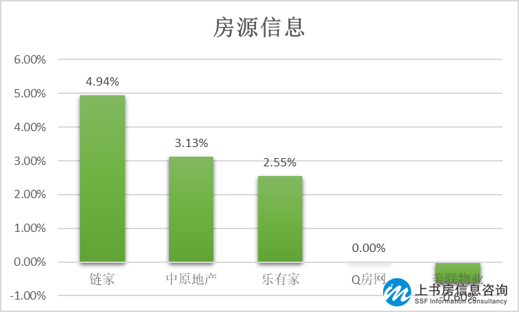 鏈家在房源信息方面凈推薦率最高,為4.94%;中原地產(chǎn)與樂有家的顧客推薦率排名二三位,均高于2%。