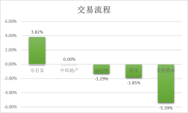 樂有家(原家家順)在交易流程方面凈推薦率最高,為3.82%;美聯(lián)物業(yè)凈推薦率最低,為-5.39%;其他幾家品牌公司的凈推薦率相差不大。