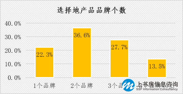 本次調(diào)研受訪者在做地產(chǎn)消費(fèi)時(shí),選擇2個(gè)及2個(gè)以上地產(chǎn)品牌的占比為77.7%,表明消費(fèi)者在做消費(fèi)時(shí)會(huì)多加對(duì)比;