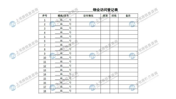 為了更高效、科學(xué)的完成入戶訪問,上書房信息咨詢現(xiàn)場執(zhí)行督導(dǎo)按照項(xiàng)目樓棟劃分區(qū)塊,分配相應(yīng)的訪問員進(jìn)行入戶訪問,并要求訪問員抄錄各樓棟走訪的房號信息。表格如下: