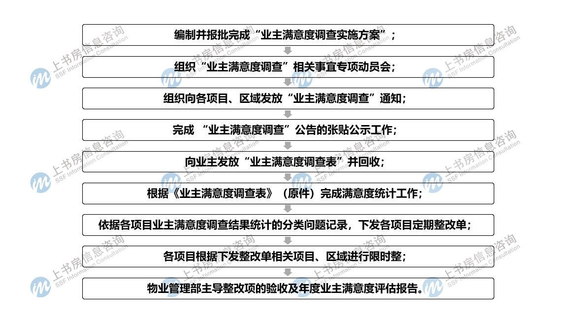 在建立滿意關(guān)系模型之后,我們?cè)趺撮_展物業(yè)服務(wù)滿意度調(diào)查呢?上書房信息咨詢物業(yè)滿意度調(diào)查通常分為6個(gè)步驟: