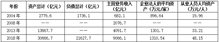 單位企業(yè)法人的平均負債和營收水平提升顯著。單位企業(yè)法人的平均負債從2004年的560.03萬元/家上升至2018年的924.26萬元/家。2004年平均每家企業(yè)法人的主營業(yè)務收入為220.03萬元/家,而2018年平均每家企業(yè)法人的營業(yè)收入為387.44萬元/家。另一方面,行業(yè)平均每個從業(yè)人員的負債從最初12.46萬元/人,上升至2018年的33.96萬元/人;同時,平均每個從業(yè)人員的主營業(yè)務收入在2004年約為4.89萬元/人,而2018年的每單位從業(yè)人員的營業(yè)收入為14.23萬元/人。