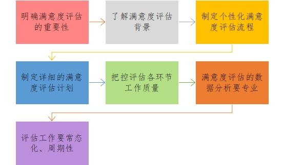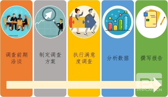 滿意度評估的一般流程為:調(diào)查前期洽談、制定調(diào)查方案、執(zhí)行滿意度調(diào)查、分析數(shù)據(jù)、撰寫報告。