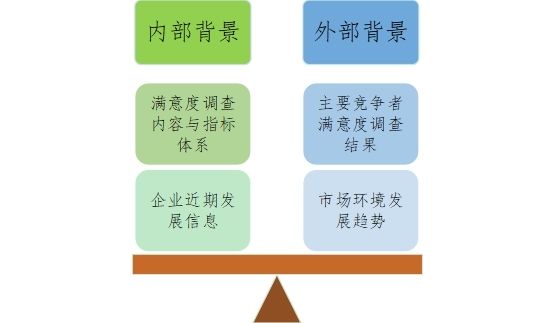 背景了解分為兩方面,企業(yè)內(nèi)部背景和外部環(huán)境背景。在內(nèi)部主要了解企業(yè)以往的滿意度調(diào)查內(nèi)容和指標體系,根據(jù)內(nèi)容體系的專業(yè)程度和企業(yè)近期發(fā)展信息予以調(diào)整更新或沿用。在外部則需要了解企業(yè)主要競爭者的調(diào)查結(jié)果和市場環(huán)境的發(fā)展趨勢。了解競爭者的滿意度指標和調(diào)查結(jié)果是為了更好地進行對比,對市場趨勢的了解則是為了把握戰(zhàn)略發(fā)展方向。