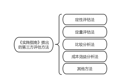 《實(shí)施指南》規(guī)定的評(píng)估方法有定性評(píng)估、定量評(píng)估、比較分析、成本效益分析及其他方法,如下圖。其中定性評(píng)估是最重要的評(píng)估方法,只有對(duì)政策措施進(jìn)行定性分析之后,才能從整體上評(píng)估好某一政策措施。另外,綜合上述評(píng)估方法進(jìn)行綜合評(píng)估,單獨(dú)采取某一種方法得出的評(píng)估結(jié)果不具有全面性、完整性,每種評(píng)估方法各自有一定的缺陷,第三方評(píng)估機(jī)構(gòu)在開展具體評(píng)估工作時(shí)多種評(píng)估方法結(jié)合使用,各種評(píng)估方法相互彌補(bǔ),共同結(jié)合成一套相對(duì)完整的、科學(xué)的評(píng)估方法體系。