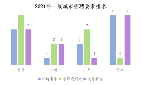 2021年一線城市中,深圳招聘需求最旺盛、支付月薪最高,北京吸引力位居第一