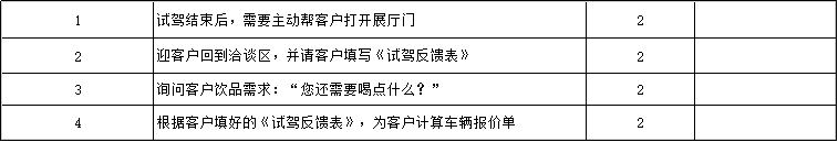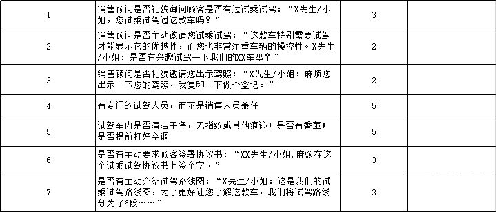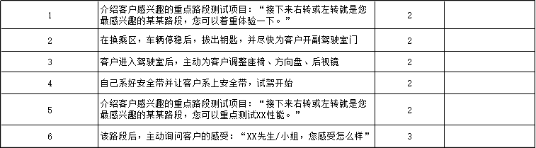 試駕結(jié)束后,并不代表服務(wù)就結(jié)束了,神秘顧客會考察后續(xù)的服務(wù)仔細程度,比如是否幫開車門、幫開展廳門、后續(xù)洽談是否有及時提供飲品等。