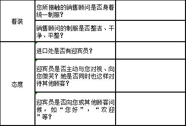 所謂“人靠衣裝,佛靠金裝”,不是說外表決定了一切,而是指外表的精神面貌能反映門店服務人員的服務態(tài)度與意識。標準的職業(yè)穿著、合理的配飾和能夠用于表明身份的名片是能夠幫助顧客辨認識別門店檔次,甚至是品牌定位,因此在新能源汽車的門店暗訪中,標準著裝和迎接態(tài)度是服務考察中的重要一環(huán)。