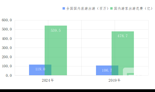 清明節(jié)假期已成為春季旅游市場(chǎng)的重要節(jié)點(diǎn)。2024年,經(jīng)文化和旅游部數(shù)據(jù)中心測(cè)算,假期3天全國(guó)國(guó)內(nèi)旅游出游1.19億人次,按可比口徑較2019年同期增長(zhǎng)11.5%;國(guó)內(nèi)游客出游花費(fèi)539.5億元,較2019年同期增長(zhǎng)12.7%。