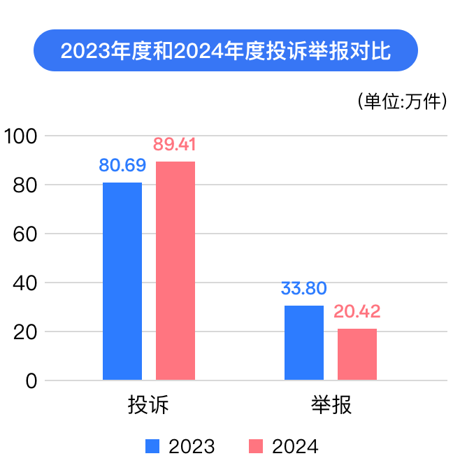 根據(jù)深圳市市場監(jiān)督管理局?jǐn)?shù)據(jù)顯示,2024年接收處理投訴、舉報(bào)工單共計(jì)109.83萬件,同比降低4.07%。其中,接收投訴89.41萬件,同比增長10.81%;接收舉報(bào)20.42萬件,同比下降39.58%。