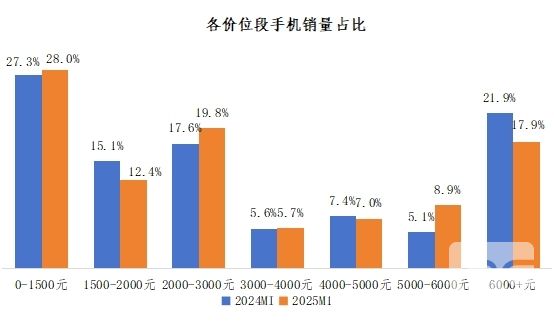 國(guó)補(bǔ)政策實(shí)施首月,市場(chǎng)反應(yīng)迅速,各價(jià)位段手機(jī)銷(xiāo)量占比呈現(xiàn)顯著分化。數(shù)據(jù)顯示,2-4千元價(jià)位段銷(xiāo)量占比增長(zhǎng)2.3%,5-6千元價(jià)位段增長(zhǎng)3.8%,而6千元以上機(jī)型因不符合補(bǔ)貼條件,銷(xiāo)量占比下滑4.0%。這一政策精準(zhǔn)刺激了中高端市場(chǎng),促使廠商調(diào)整其市場(chǎng)策略。廠商們迅速對(duì)政策作出反應(yīng),利用“降價(jià)與補(bǔ)貼”的雙重策略來(lái)爭(zhēng)奪市場(chǎng)份額。